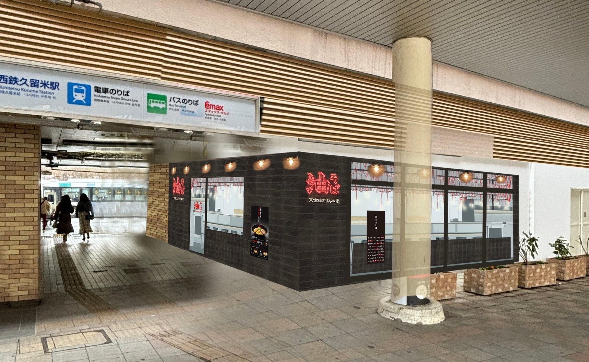 今回オープンする 「築地銀だこ 西鉄久留米店」 と 「東京油組総本店 久留米組」 は、現在リニューアル工事中の 『レイリア久留米(現:エマックス・クルメ)』 の1階(バスターミナル付近)に、両店が隣接する形で同日にオープンいたします。