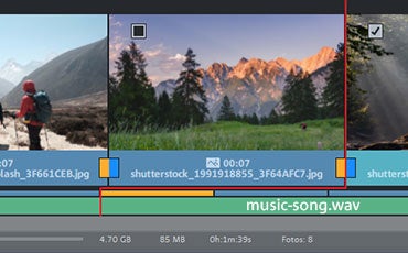 高速なインポート、スムーズな編集、超高速エクスポートを実現。1分間のフォトムービーを12秒で書き出せます(Intel i7 6700とNVIDIA GeForce GTX 1070/1分間のフルHD、MP4、AVCデータを書き出した場合)