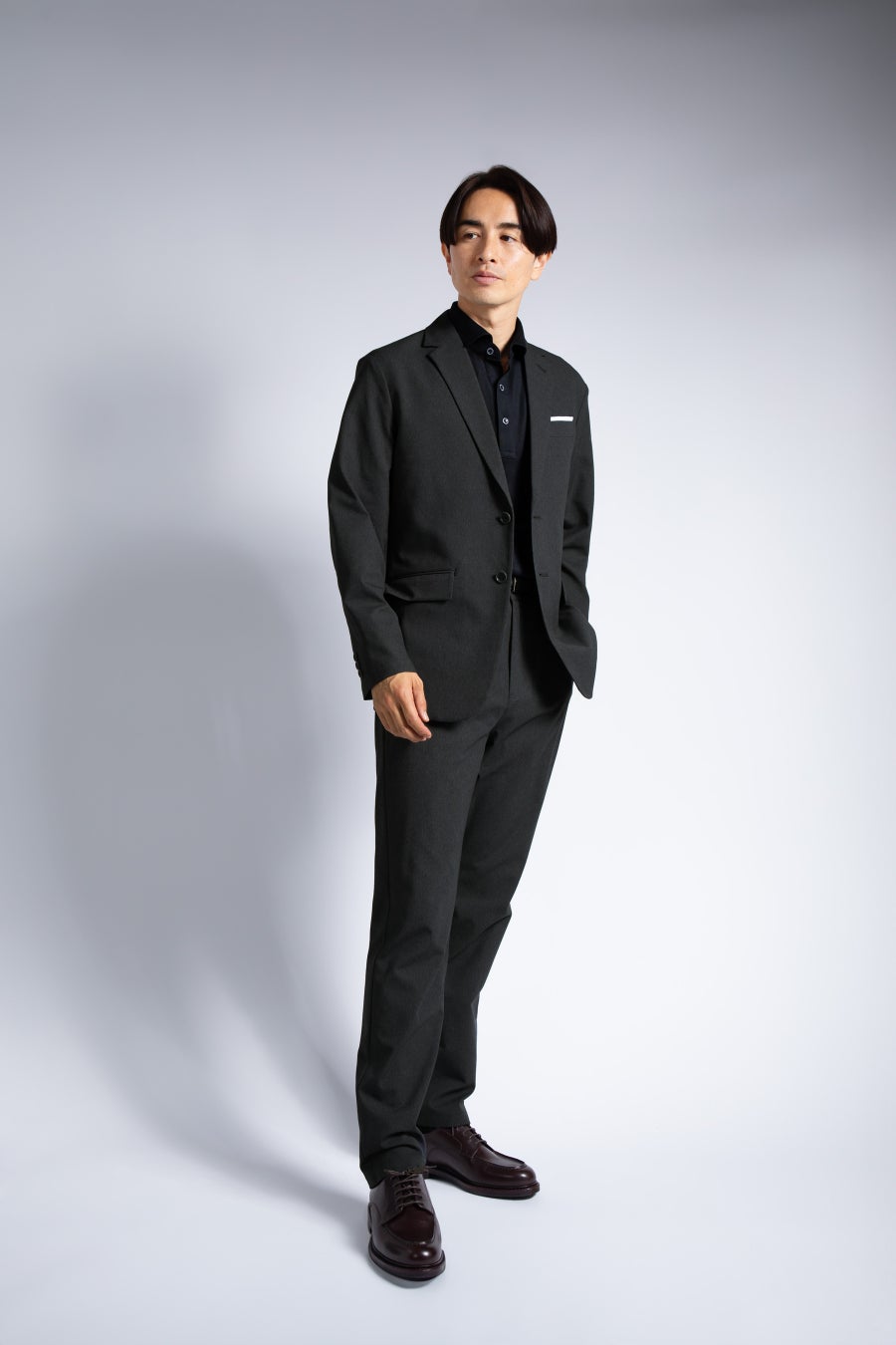 特徴:見た目を損なわない細かな通気孔があいた、高温多湿の夏に適した自社素材「ultimex COOL/アルティメックスクール」を使用。夏用スーツあるあるの透け感を限りなく無くし、シャツや下着が透けないようにアップグレード。染色にこだわり、深みのあるカラーに仕上げました。高いストレッチ性を持ち、速乾と撥水に優れているので汗によるべたつきを解消し、突然の雨にもしっかり対応いたします。胸ポケットは、出し入れ可能なフェイクチーフ付き。パンツはウエストゴムとドローコードでウエストの調整が可能。さらに右ポケット横のコンシールファスナーポケットで落としたくない小物類を収納可能。