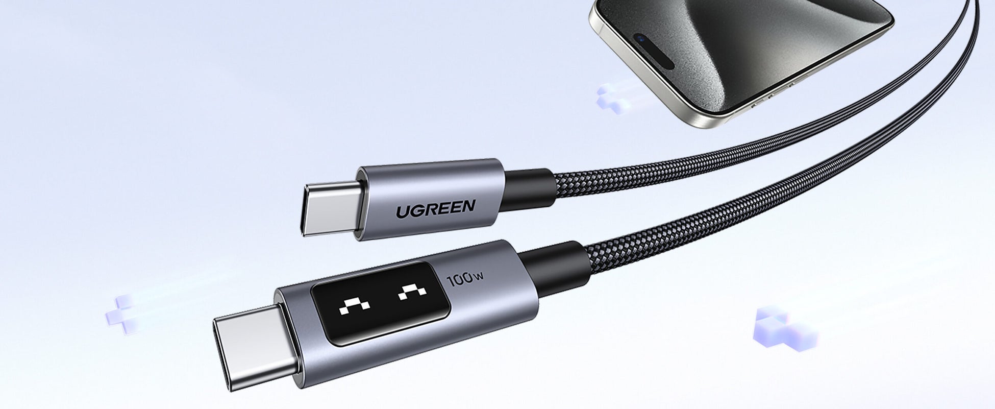 UGREEN Uno USB-C&USB-C PD急速充電ケーブル 100W | 液晶画面に表示されるロボットの笑顔に遊び心のあるケーブル