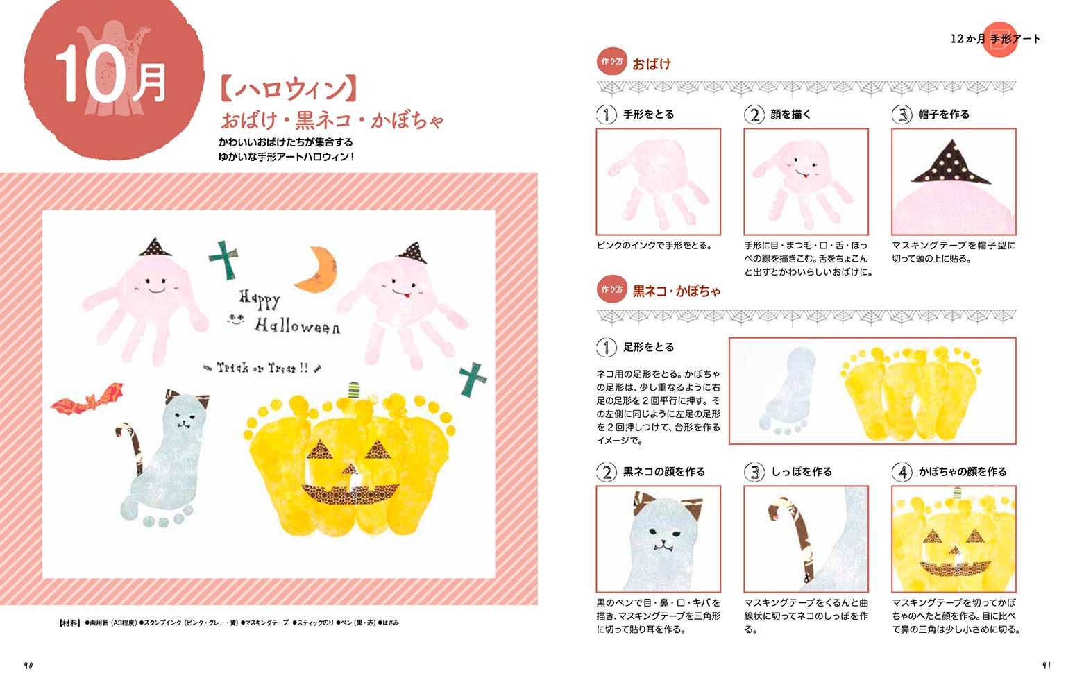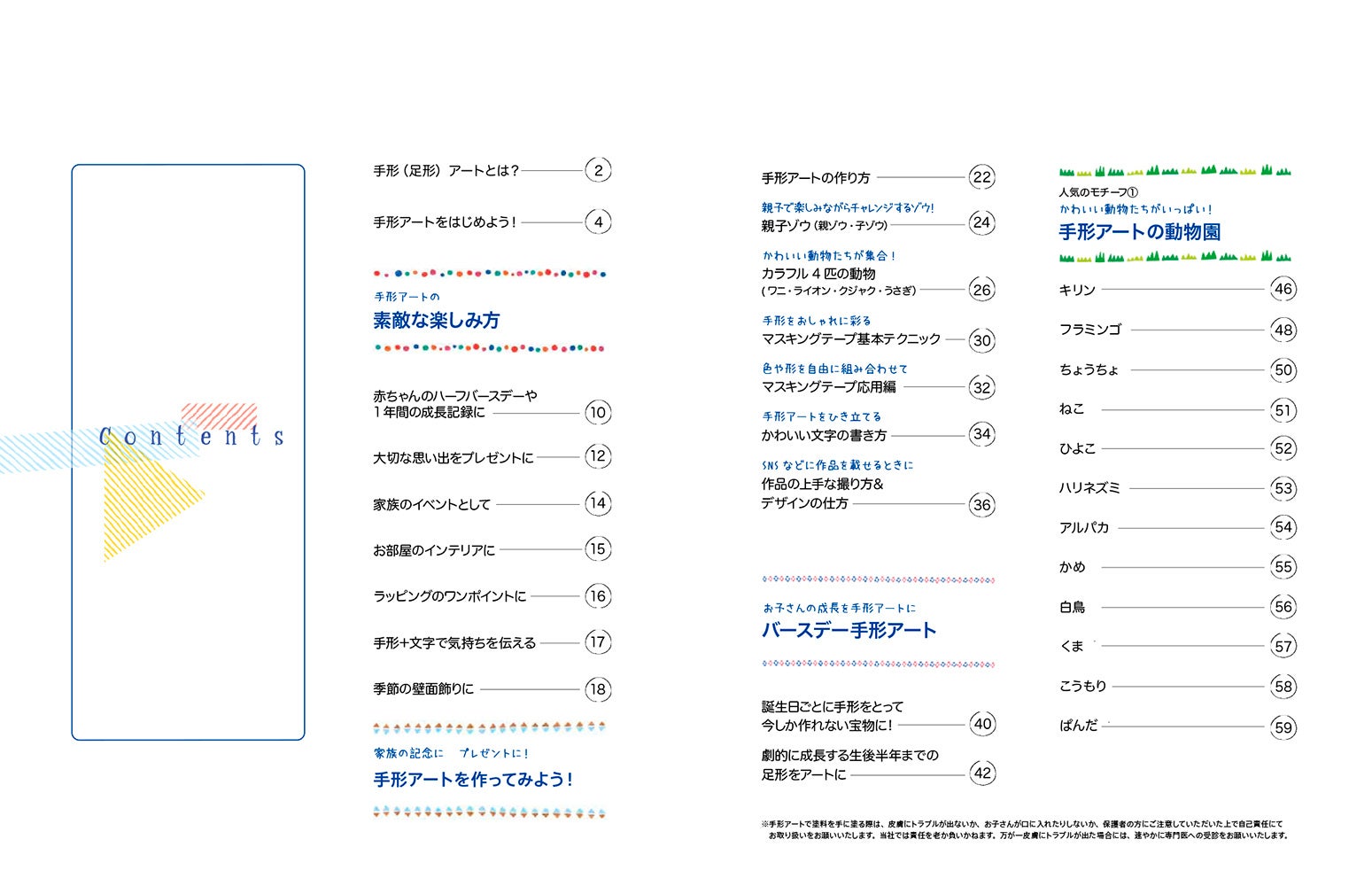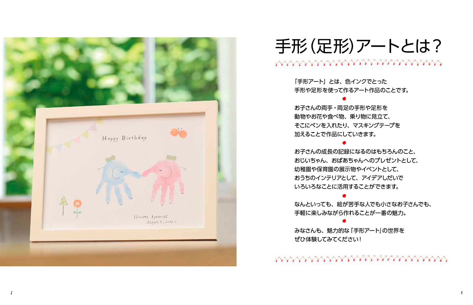 本書は手形アートの作り方や楽しみ方、人気のモチーフアイデアを紹介する一冊です。