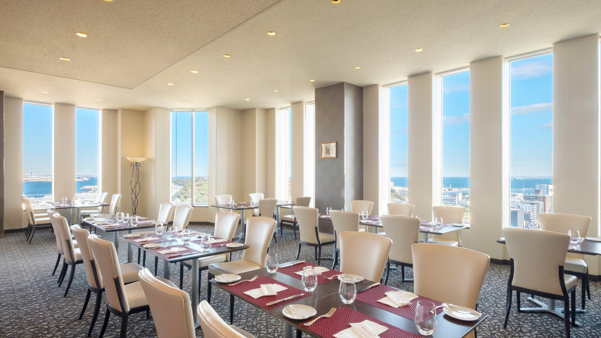 19階フレンチレストラン「ビストロ・ブルゴーニュ」では、唯⼀無⼆の横須賀港の眺望とともに、地産地消の⾷材を使ったフレンチをお楽しみいただけます。