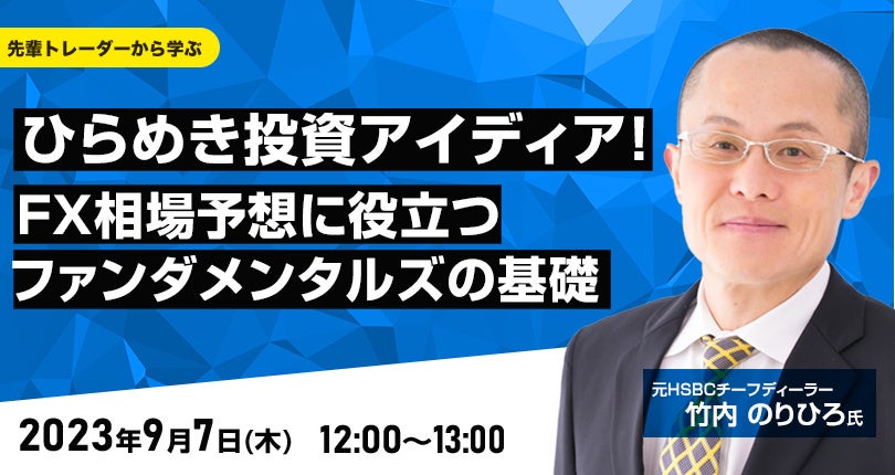 【外為どっとコム】竹内 のりひろ氏が解説!『ひらめき投資アイディア!FX相場予想に役立つファンダメンタルズの基礎』9月7日(木)12時よりオンラインセミナー開講