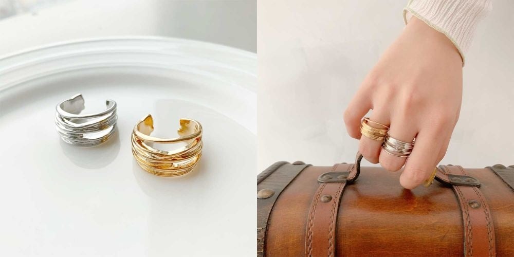 シーズン問わずに使いたいメタルリングは、シンプルながらも滑らかな曲線や質感が特徴的。
