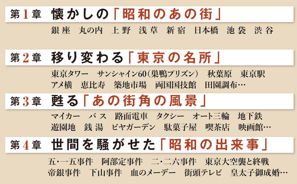本書は街並みの移り変わりから人びとの暮らしぶり、そして世間を騒がせたあの事件まで、「東京の昭和」を地図で読み解く一冊です。