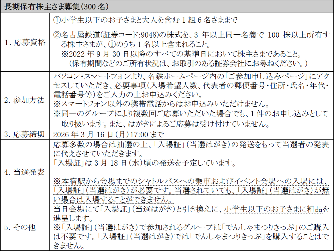 申込方法や当選時の購入方法等については名鉄ホームページをご確認ください