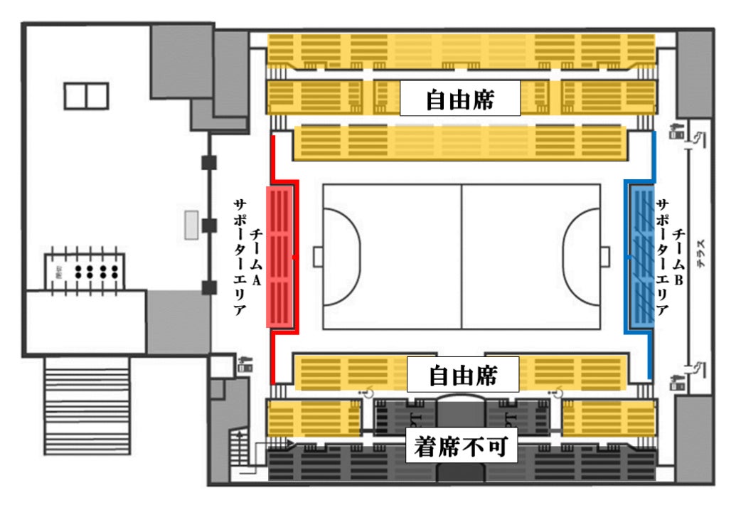 ※メイン・バックスタンド側には防球ネットが張られていない為、安全面の理由から前段ブロックでの未就学児の観戦禁止とさせていただきます。