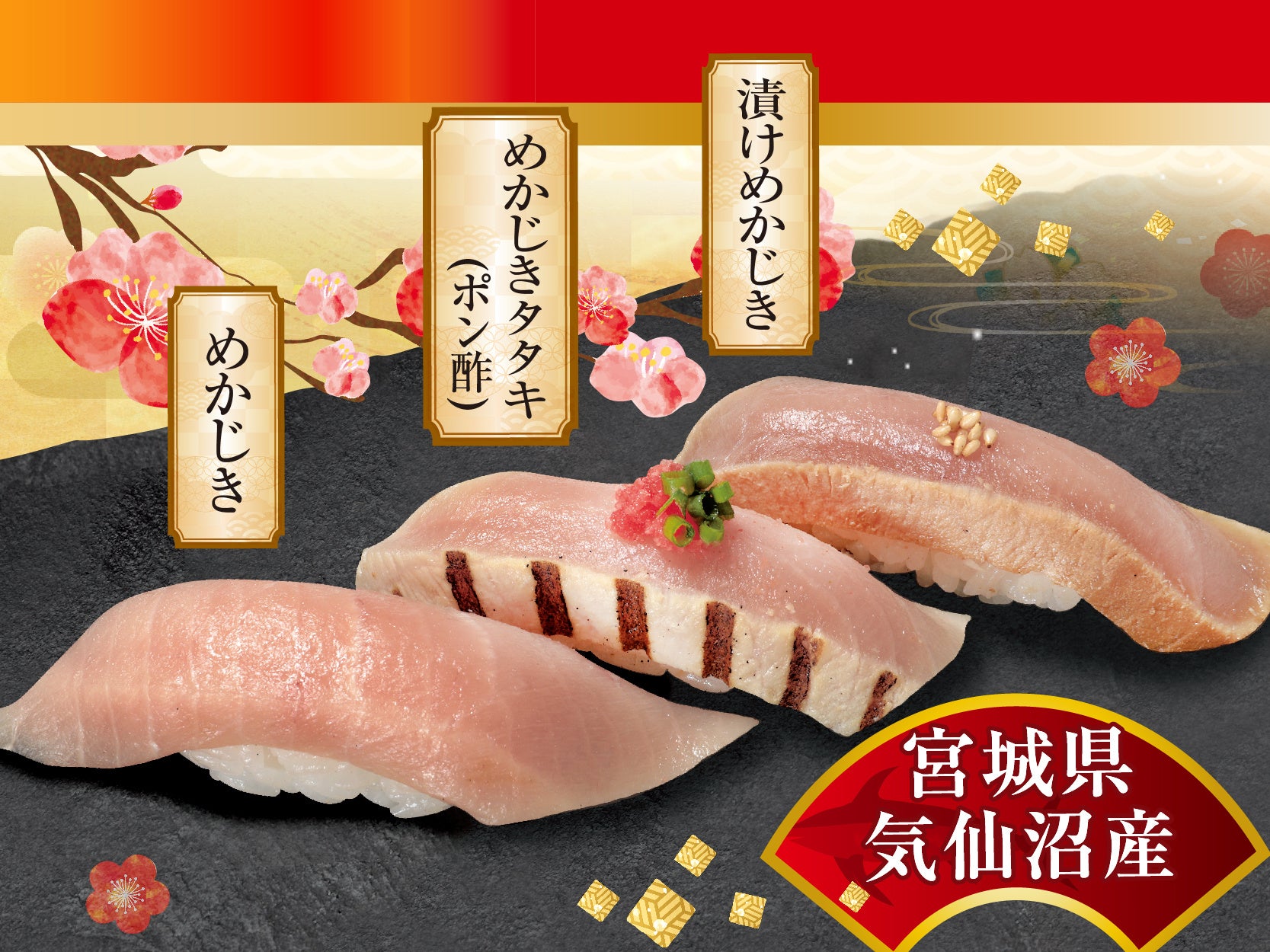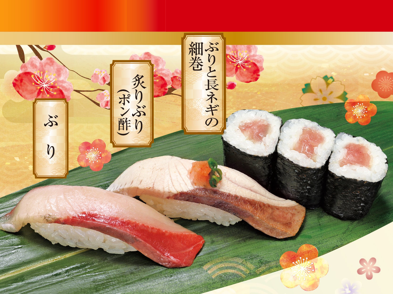 寿司ネタとして不動の人気を誇る本まぐろか、身がひきしまった旬のぶりか、どちらも脂のり抜群!うまい鮨勘では、回転寿司店舗・ゆとろぎ店舗、東北対面寿司店舗それぞれの業態で、季節限定メニューを販売します。