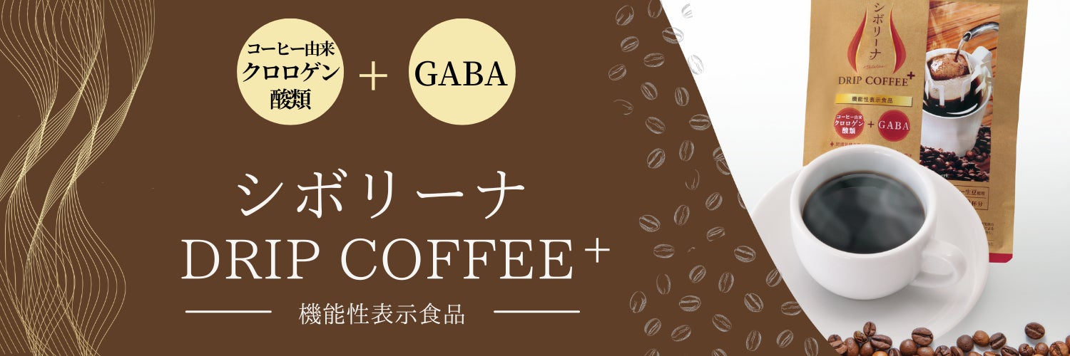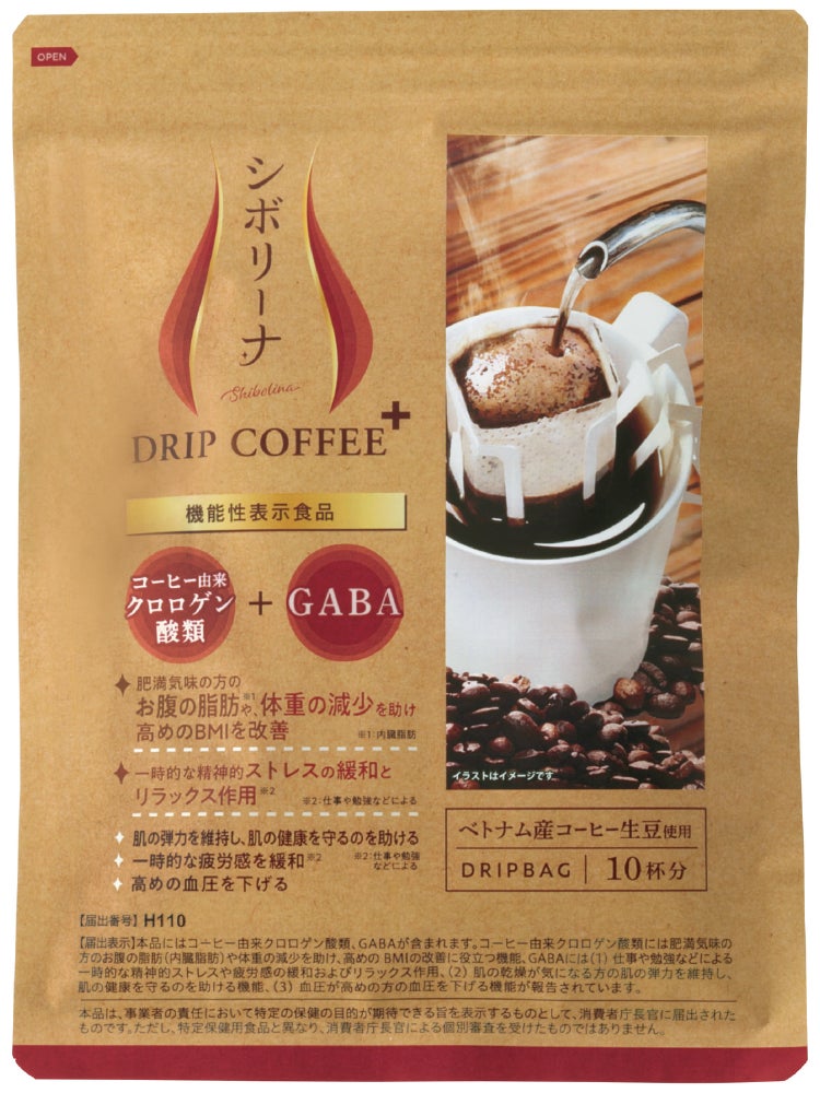 このたび販売する『シボリーナドリップコーヒープラス』は、「コーヒー由来クロロゲン酸類」と「GABA」の2つの機能性関与成分の効果で健康対策ができる多機能ドリップコーヒーです。