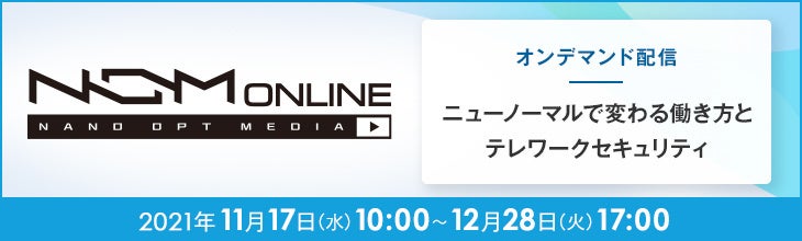 オンラインセミナー「NANO OPT Media Online」にて、『ニューノーマルで変わる働き方とテレワークセキュリティ』をテーマにしたセミナーをオンデマンド配信いたします