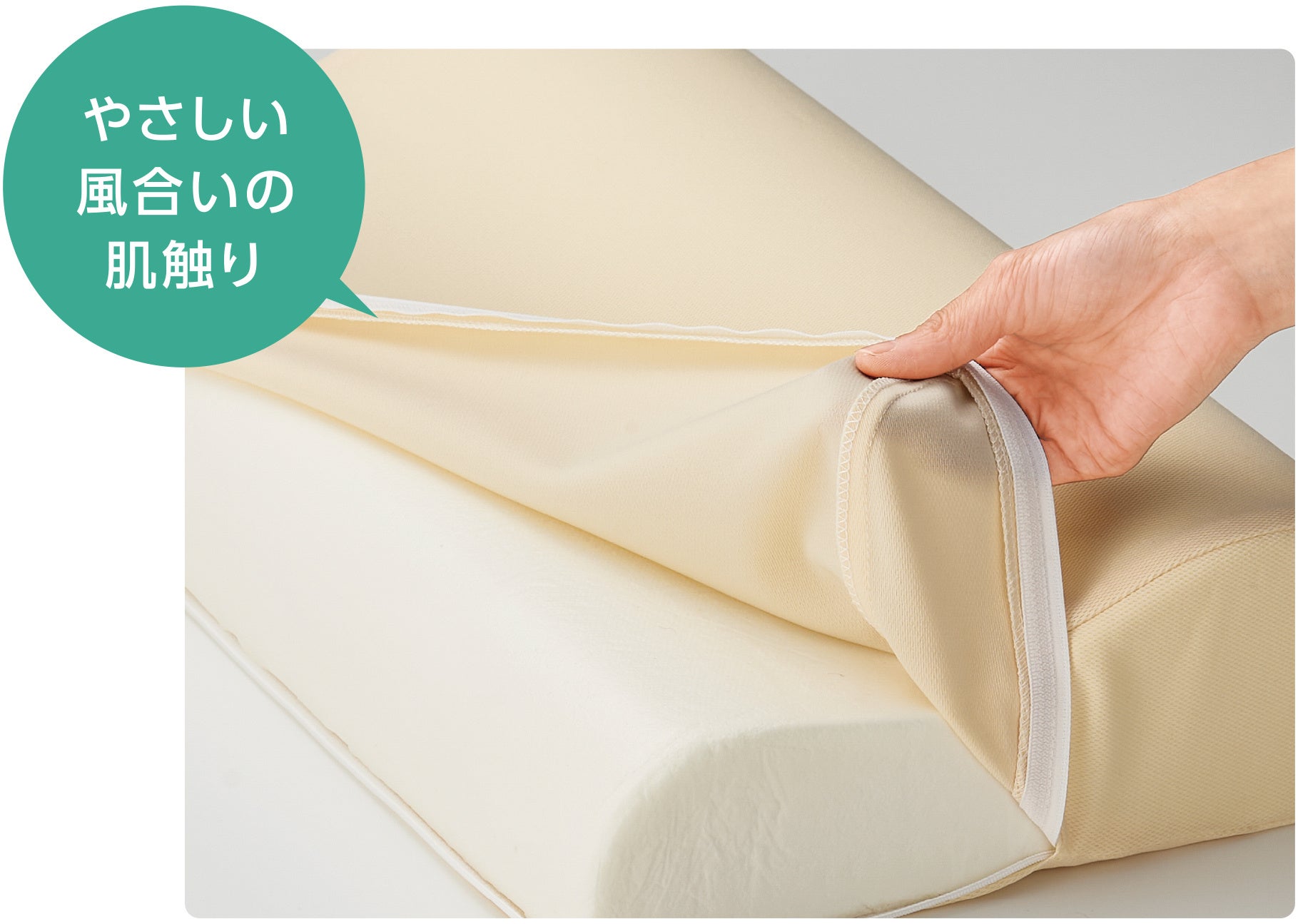カバーには肌触りのよい生地を使用。取り外して洗うことができますので、いつでも清潔にお休みいただけます。また、楽に取り外しができるコの字ファスナーを採用しました。