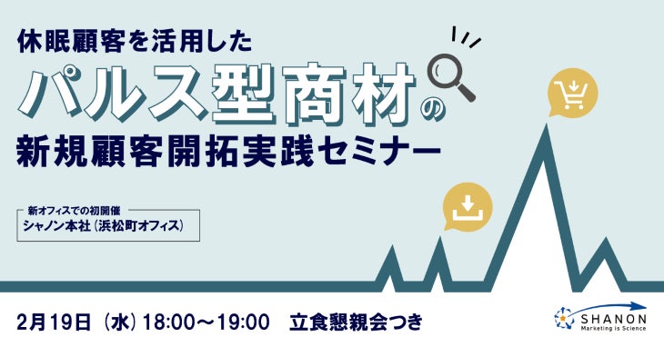 株式会社シャノン(本社:東京都港区、代表取締役:永島 毅一郎)は、「パルス型商材」のマーケティングにて、商談を生み出す手法をご紹介するセミナーを2月19日(水) に開催します。
