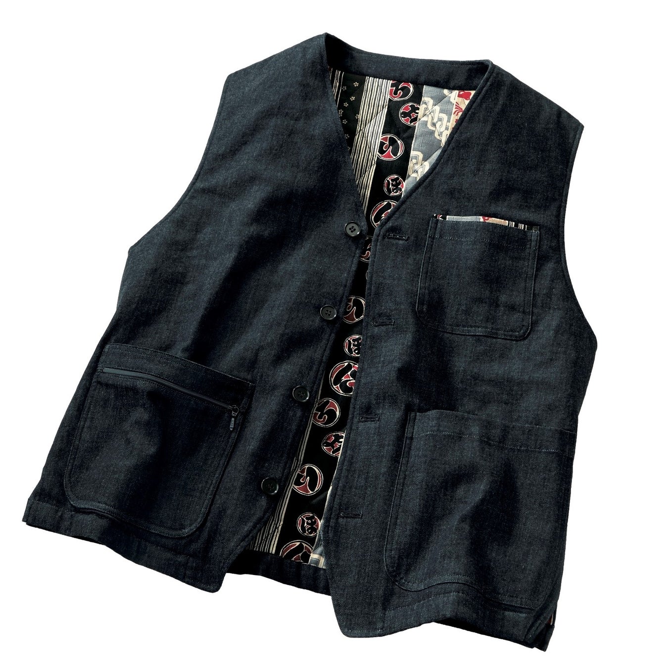 〈坂本デニム〉江戸黒染めデニムのあったか中わた入りベスト