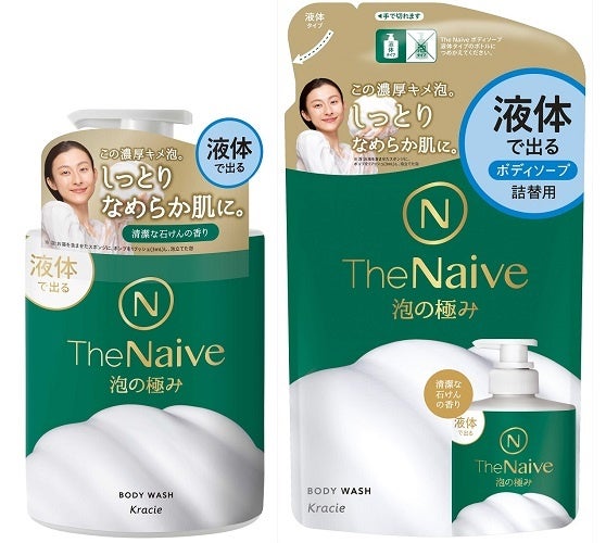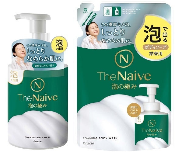 「The Naive」は、植物性石けんの力を信じて研究を続けてきたクラシエの技術力を結集し、洗う成分を改良したことにより「泡立ちの速さ」と「泡もちの良さ」にこだわった、ナイーブ史上最高傑作の「泡」を実現したボディソープです。洗うごとに増えていく、驚くほどスピーディーな“泡だち”の「液体タイプ」と、肌に伸ばしてもきめ細かさと弾力が続く“泡もち”の「泡タイプ」の2品をラインアップしています。
