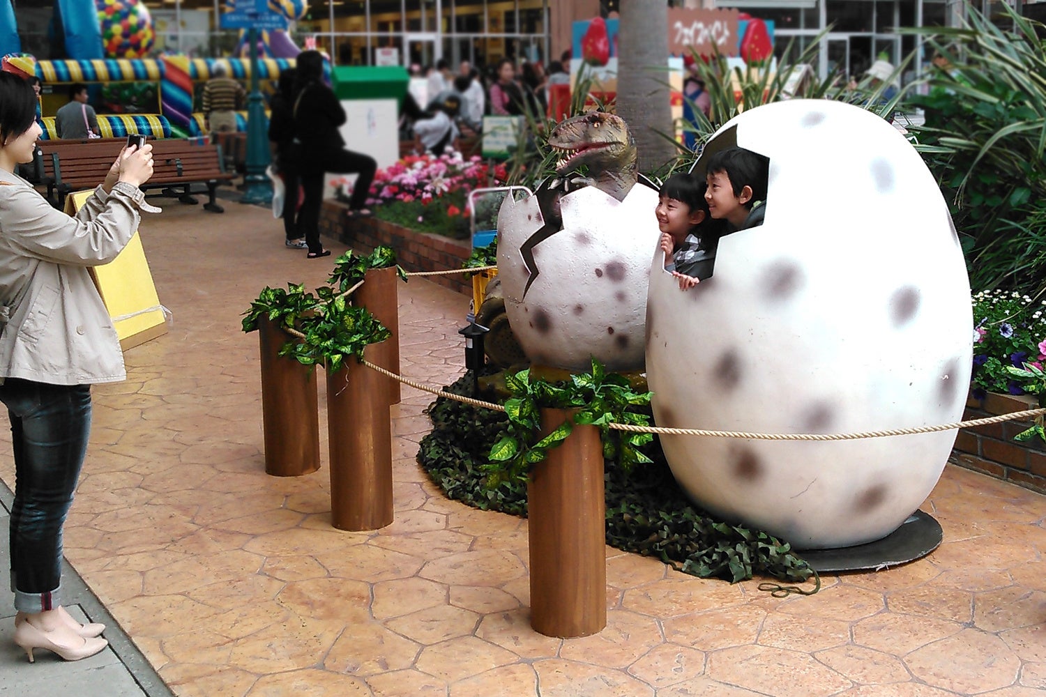 佐野プレミアム・アウトレットの遊歩道に恐竜が登場!巨大なティラノサウルスと、動くディロフォサウルスは口からミストを吹き出します。また、中に入って写真撮影ができる恐竜のたまごのフォトスポットも登場します。ひんやりと気持ちの良いミストで涼んだり、写真を撮ったりして、ショッピングの合間にお楽しみください。