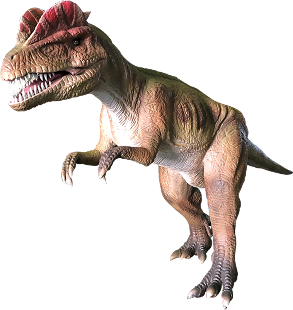 頭に半月状のトサカを持つ中型の肉食恐竜。近づくと動きます。