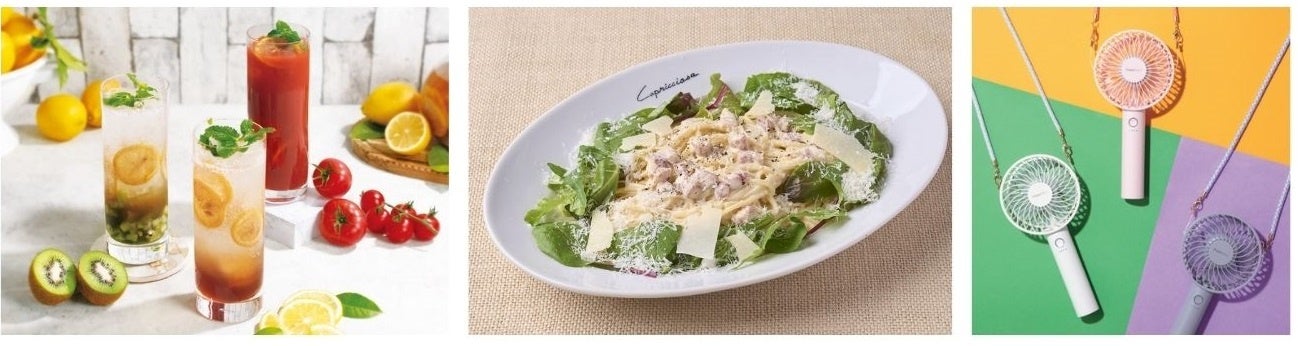 このほか、”Hot & Cool”をテーマにしたグルメやアイテムもご用意。夏こそ汗を流してスタミナをつける、熱くて辛い担々麺や、冷たくてさっぱり食べられる冷製パスタなどこの夏食べたいメニューや、冷感アイテムなどが揃います。