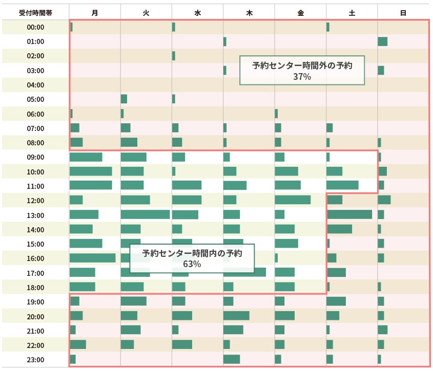 日本大学医学部附属板橋病院での先行導入の結果、 電話予約ができない休日、深夜・早朝の申し込みが約4割に上る