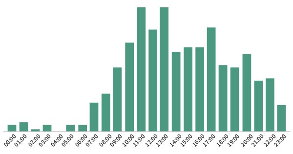 【曜日・時間ごとの予約分布(2023年4月~6月)】