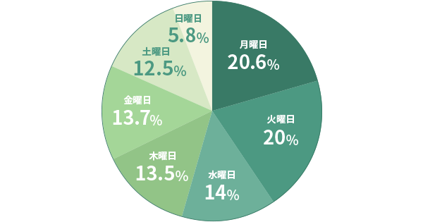 【日大板橋病院での「やくばと病院予約」の予約時間帯/曜日の分布(2023年4月~6月)】