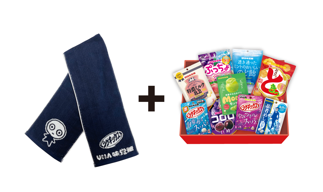 オリジナルマフラータオル+UHA味覚糖お菓子詰め合わせ