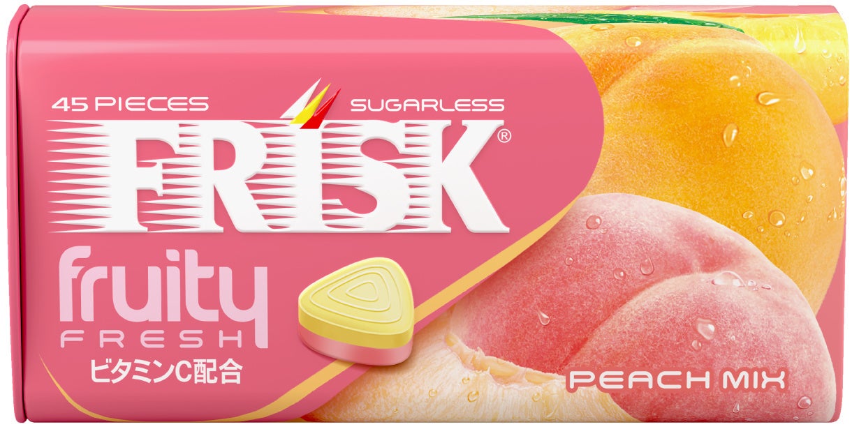 「フリスク フルーティーフレッシュ ピーチミックス」は、口に入れた瞬間に、黄桃と白桃のリッチな香りが広がり、その味わいが長続きする大粒タブレットです。ビタミンCを配合しており、手軽にビタミンCを補給しながら、味わいを楽しむことができます。おいしさで気持ちをリフレッシュできるとともに、口さみしさや空腹感を健康的に紛らわせます。