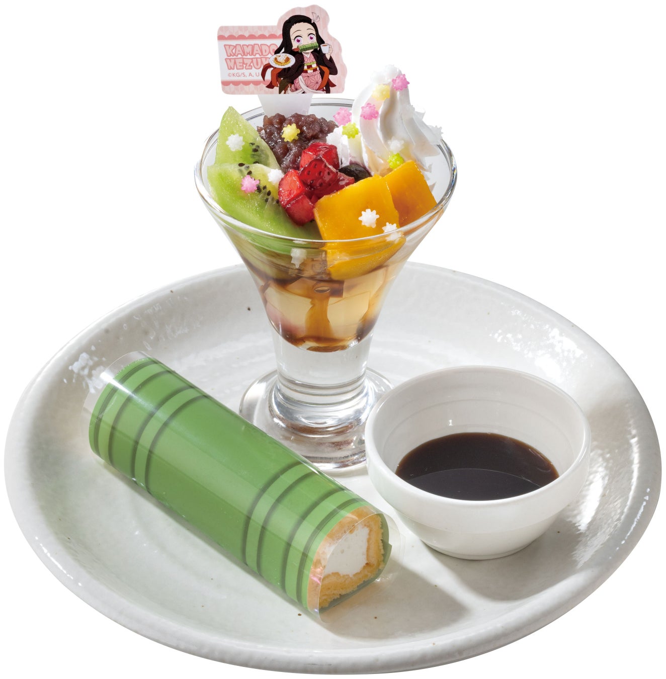 禰豆子の竹筒ロールケーキとミニ金平糖あんみつプレート