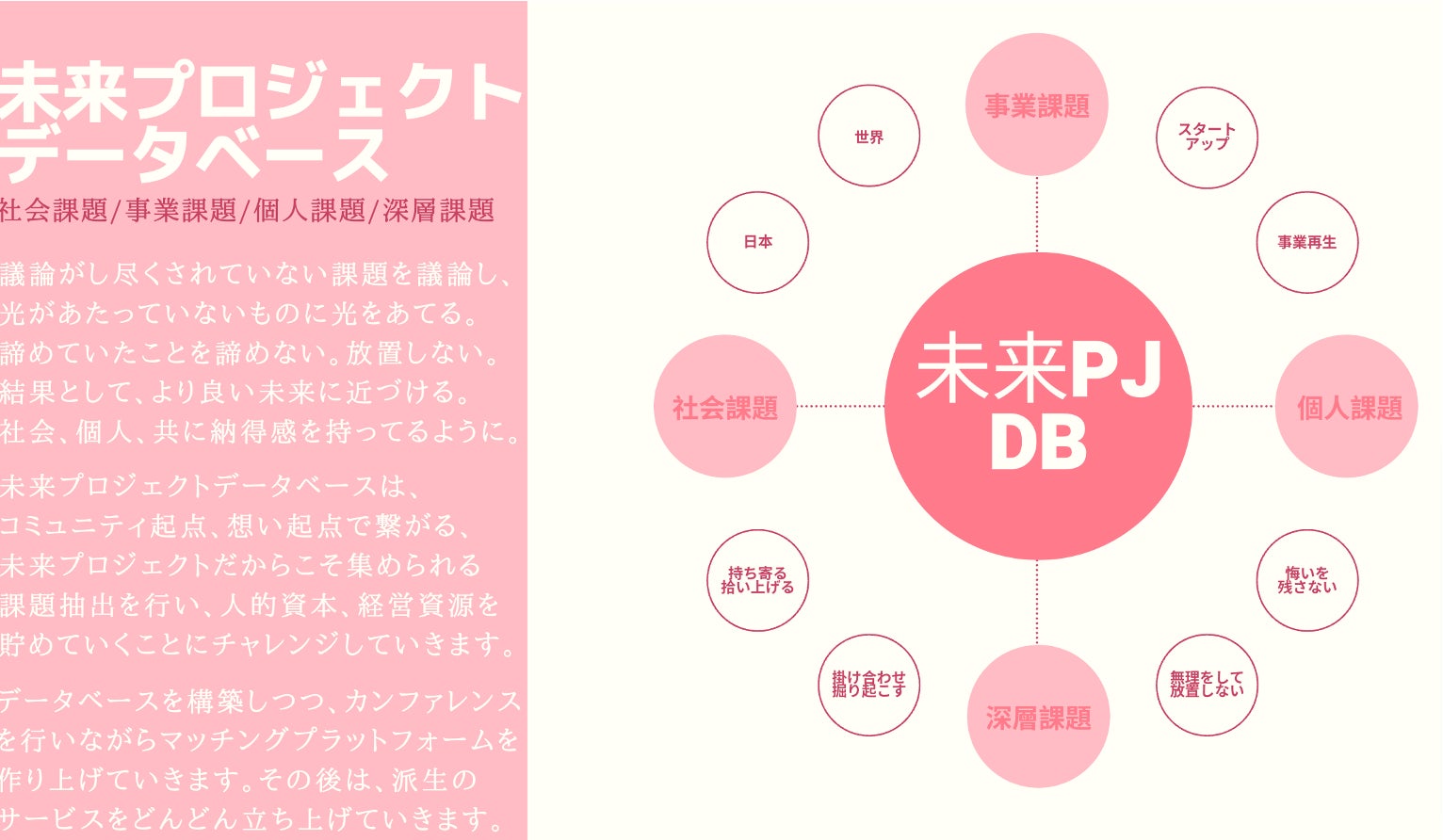 【「社会課題/事業課題/個人課題/深層課題」を集める『未来プロジェクトデータベース構想』をスタートへ】想い起点で繋がる事業家集団「未来プロジェクト」がチャレンジする人的資本と経営資源を蓄積する取り組み