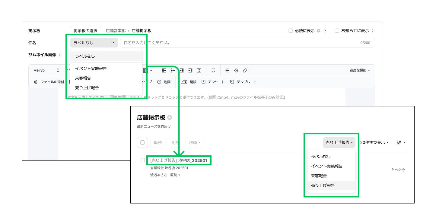 掲示板内の投稿が増えてきた場合でも、投稿にラベルを付与することで簡単に分類できます。また、ラベルでフィルタリングできるため確認したい投稿にすぐに辿り着くことが可能です。