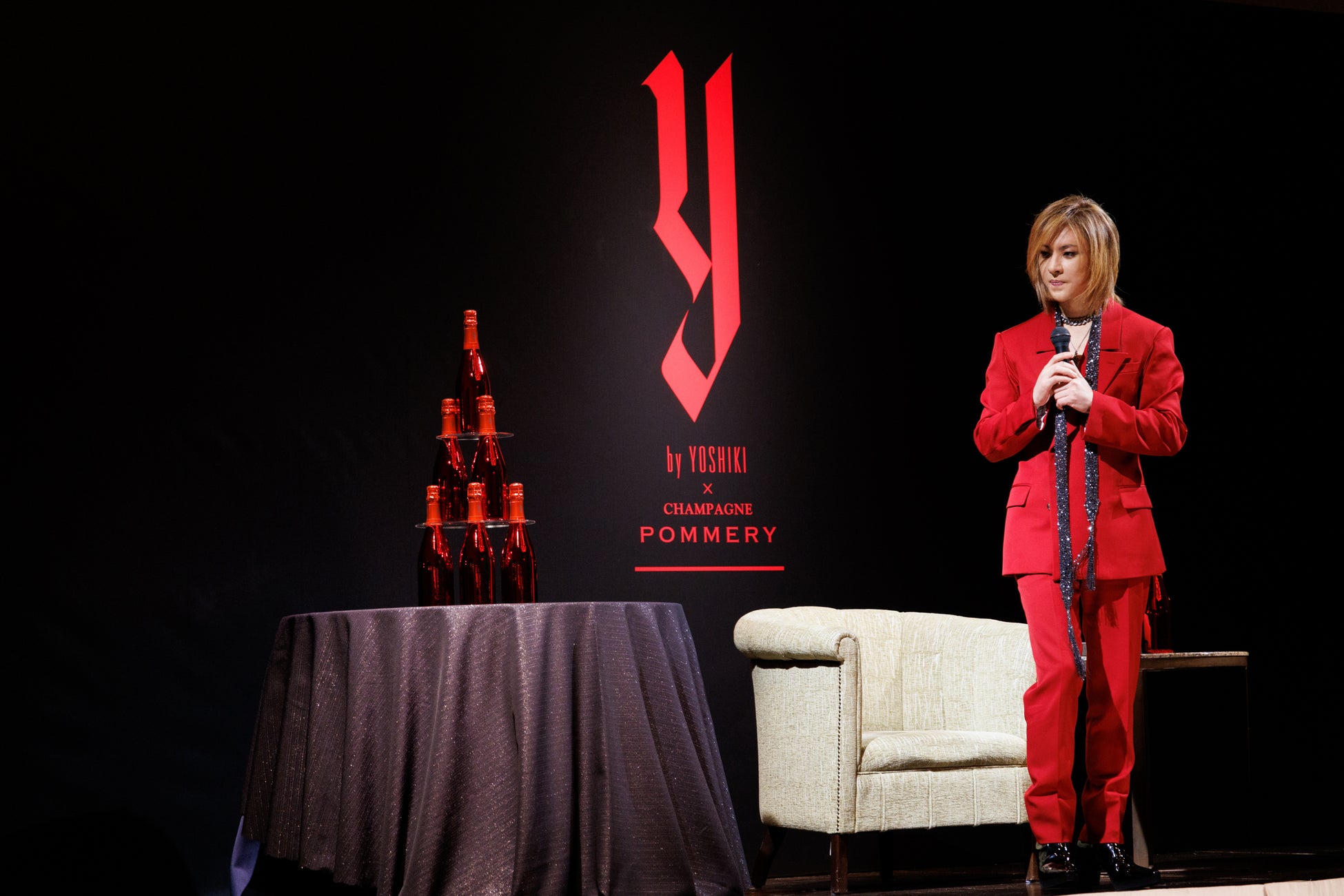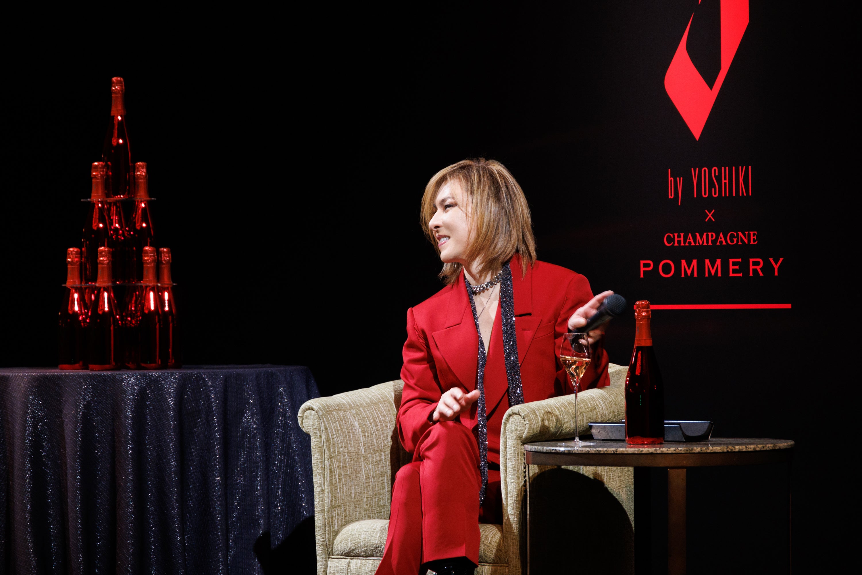 会見でYOSHIKIは、「今回のロゼは、味や色味、そしてボトルのデザインまで、数年かけてポメリーさんと何度もやり取りして細かいところまでこだわった“最強のシャンパ―ニュ”だと思っています。今回のロゼも含め、『Y by YOSHIKI×CHAMPAGNE POMMERY』はすごく繊細で、飲みやすくなっており、特別な時にかかわらず飲んでいただきたいです」と自身の自信作を紹介。