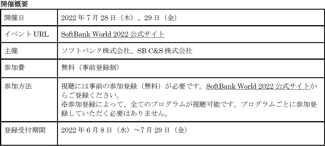 「SoftBank World 2022」を7月28~29日にオンラインで開催