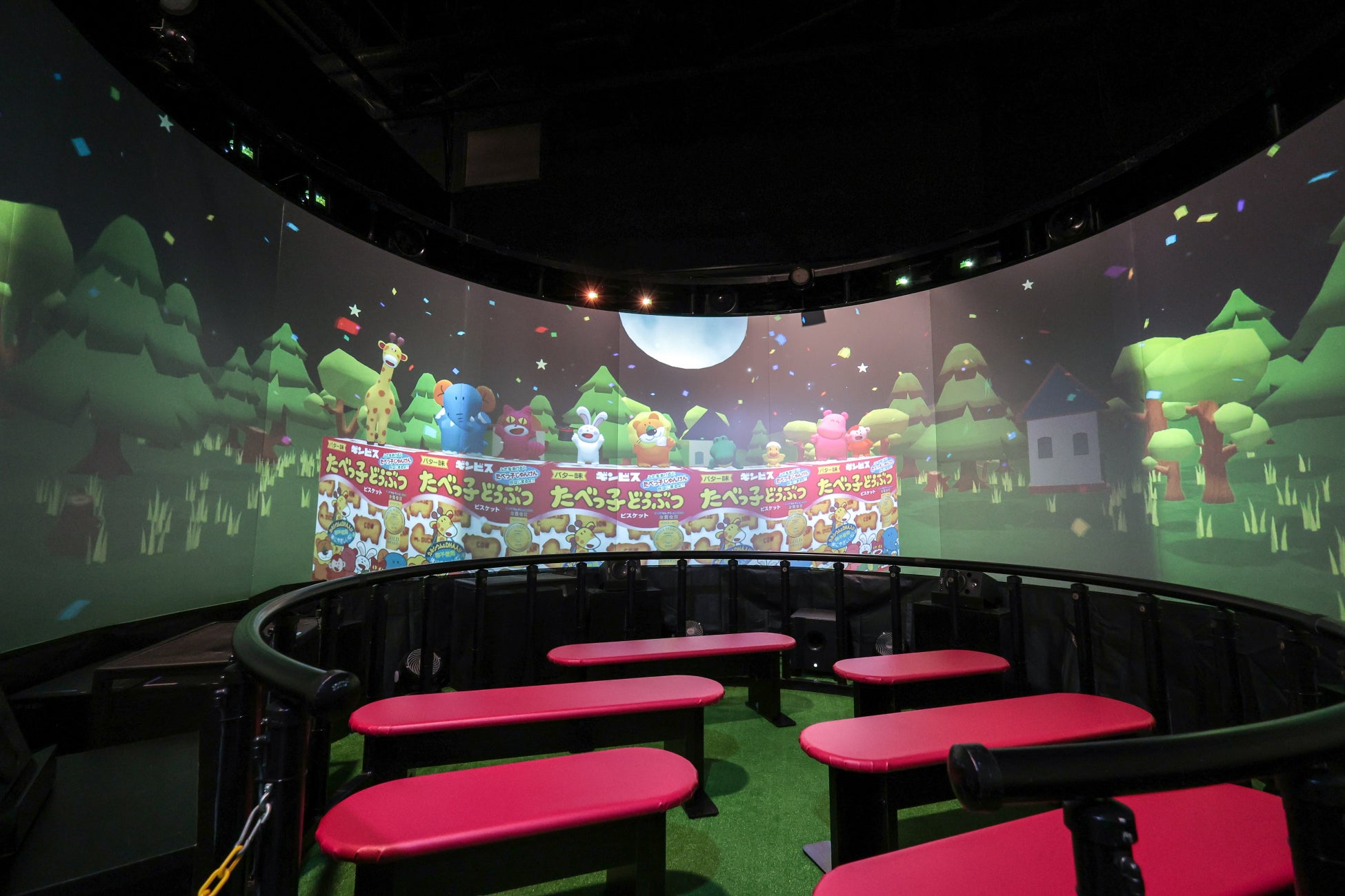 「たべっ子どうぶつ」のどうぶつたちによる不思議なショーを360度3Dアニメーションでお楽しみいただけます。