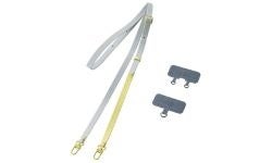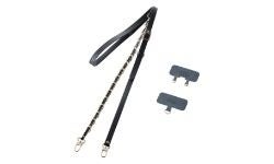 - スマートフォンとケースの間に挟むだけで使用できるショルダーストラップ