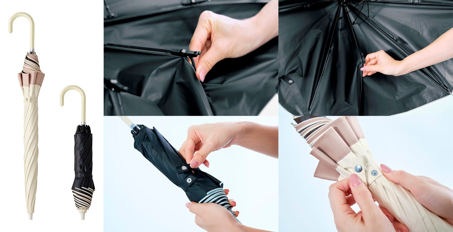 遮夏傘シリーズに、長傘のようにも、折りたたみ傘のようにも折りたためる2way仕様が登場。