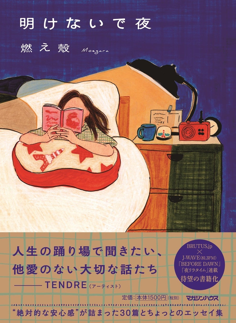 夜寝ることも重要なので、寝るまでの手順とか、落ち着くための方法はたくさんある方がいいと思います。僕は何度も読んでいる、さくらももこさんのエッセイをいつも傍に置いてるし、大槻ケンヂさんの本を繰り返し読みます。古典落語みたいに。内容は全部知っているけど、いつもそこにある物語は安心を貰えます。今回のエッセイ集、『明けないで夜』もそういう一冊になれば嬉しいですね。(BRUTUS.jpより一部転載)