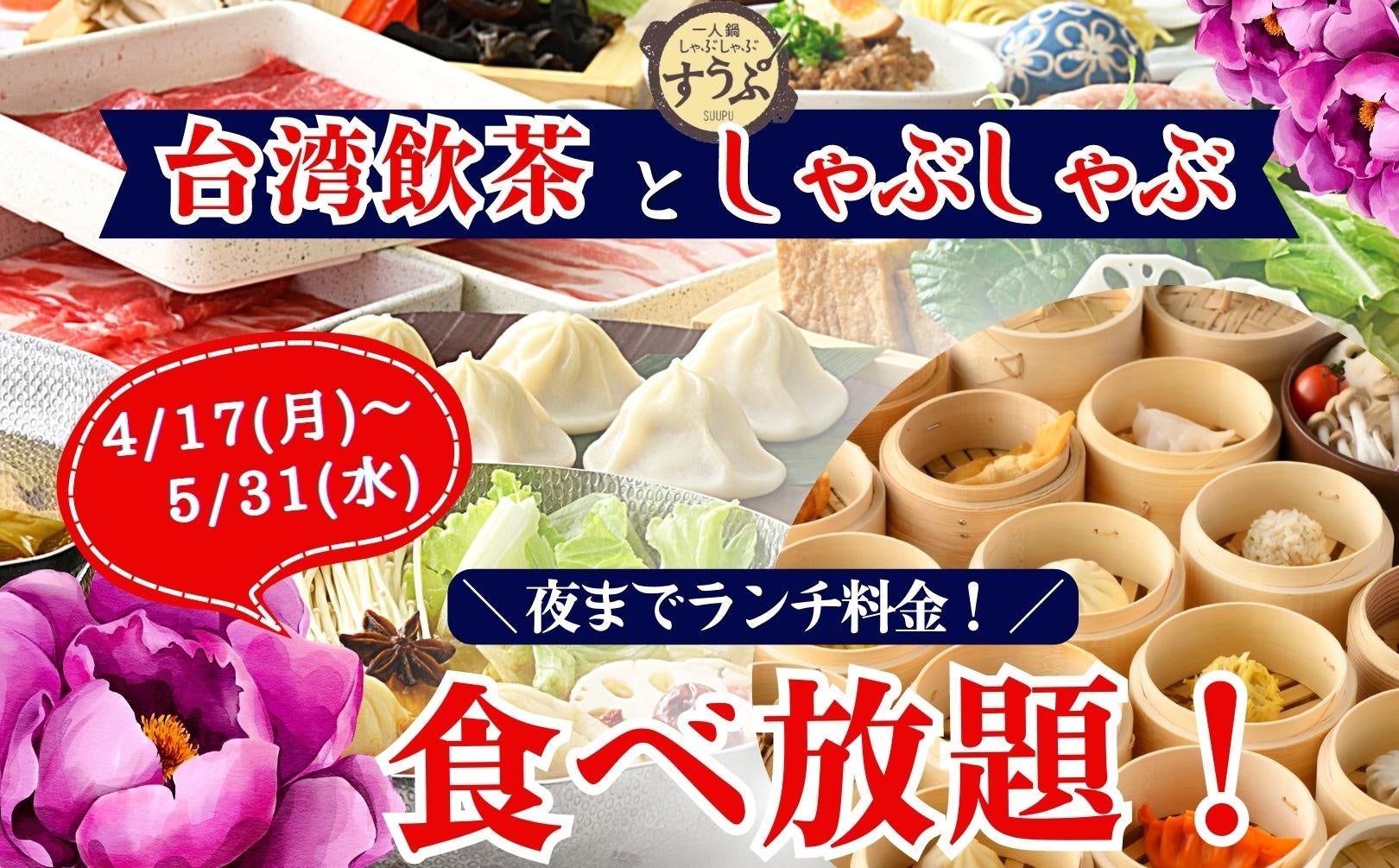 食べ放題のテーマパーク、 ニラックス株式会社(本社:東京都武蔵野市、 代表取締役:崎田 晴義)が運営する「台湾飲茶と一人鍋しゃぶしゃぶ すうぷ 静岡パルコ店』にて、4/17(月)~ 5/31(水)の平日限定にて『終日ランチ料金』でのご提供を開始いたします。