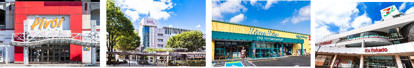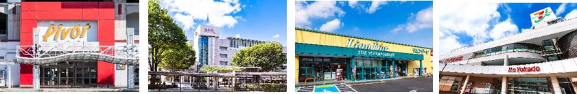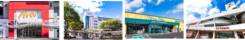 ※左から、福島駅西口パワーシティPivot (徒歩5分)、S-PAL福島(徒歩8分)、リオンドール野田店(車約2分)、イトーヨーカドー 福島店(徒歩4分)