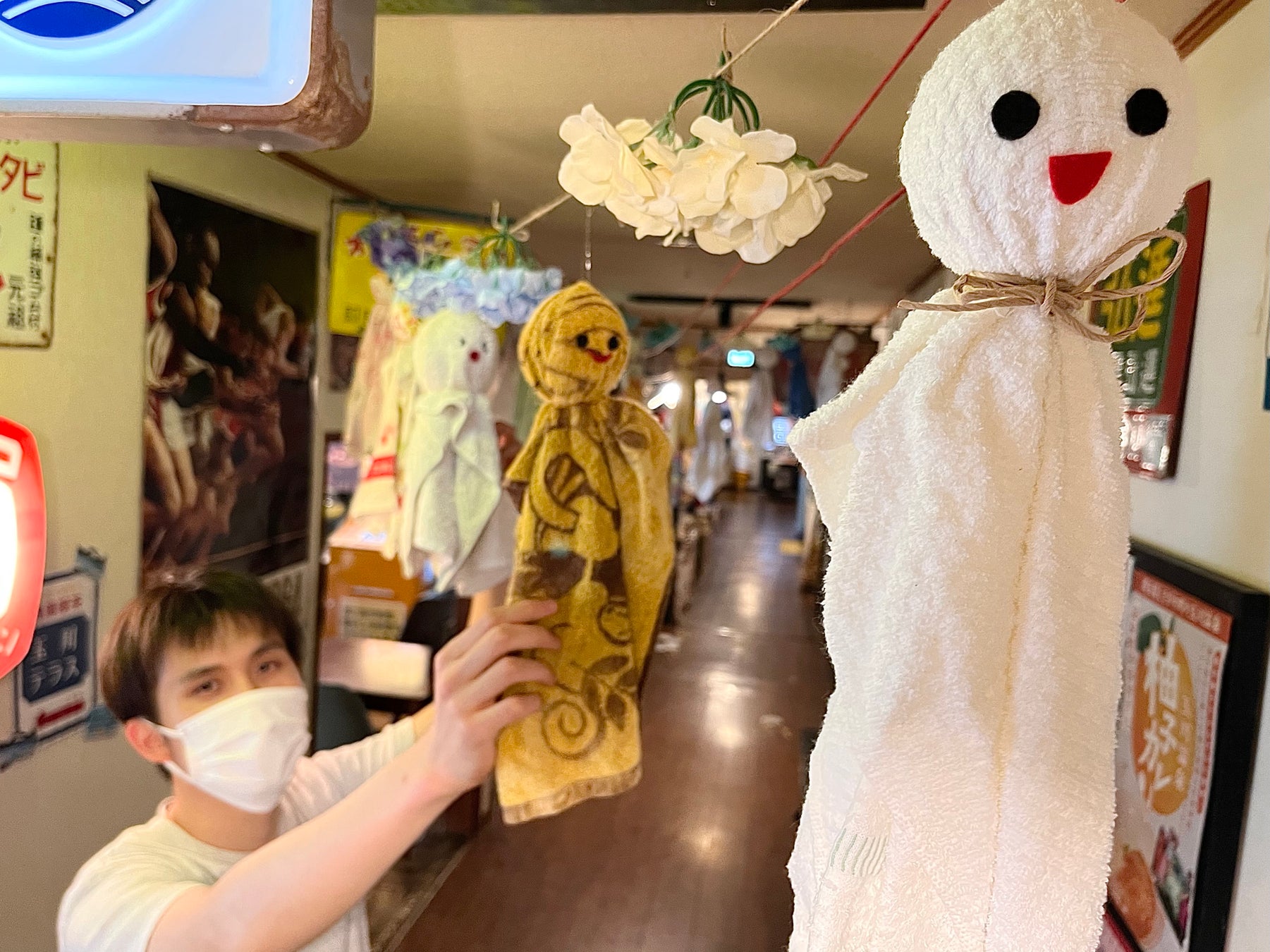 昭和レトロな温泉銭湯玉川温泉、おふろcafe 白寿の湯にて「忘れ物タオルのてるてる坊主」が館内に登場します!