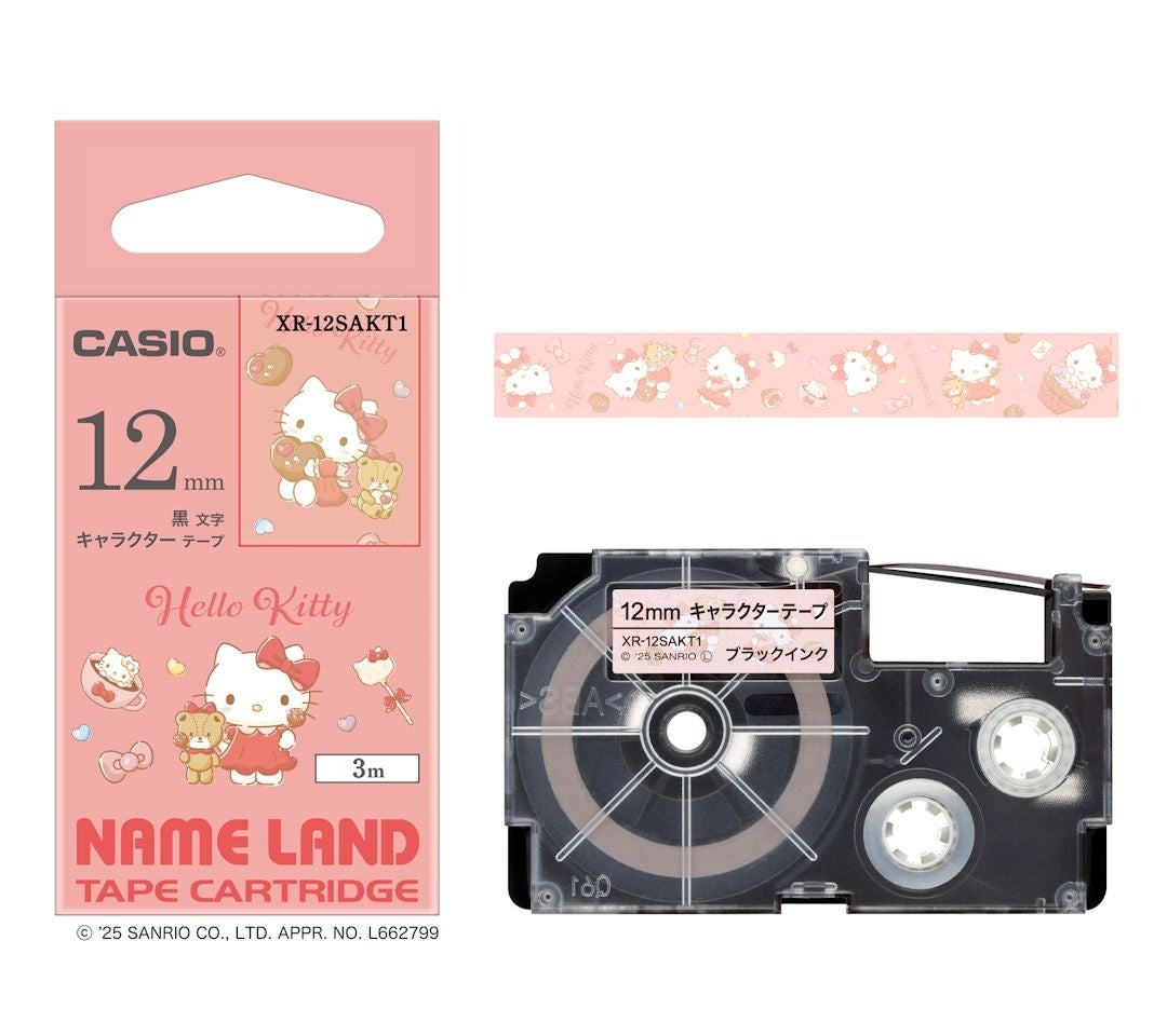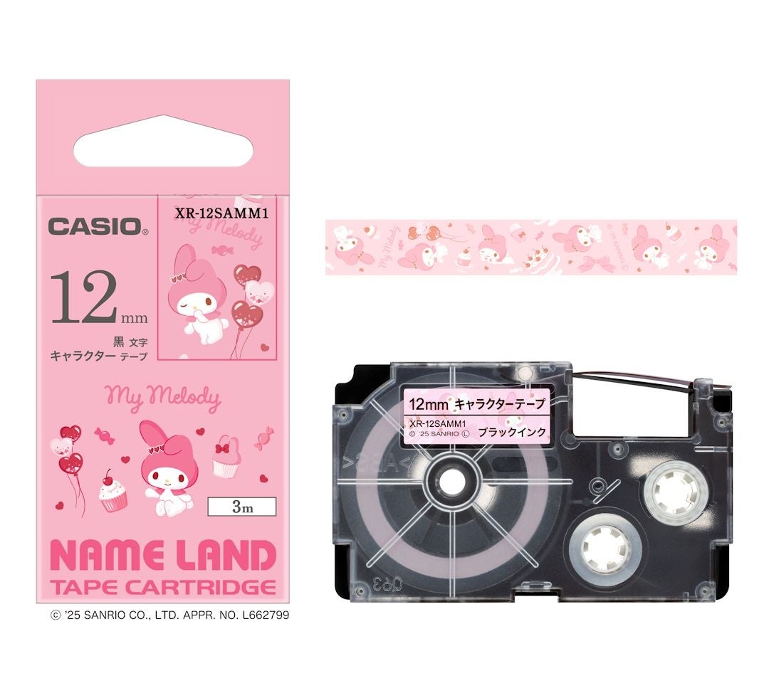 また、「サンリオ」の6キャラクター「ハローキティ」、「シナモロール」「マイメロディ」、「クロミ」、「ポムポムプリン」、「ポチャッコ」のネームランドテープ『XR-12SA』(6種)も併せて発売します。テープは、それぞれのキャラクターをイメージしたカラーとマッチした色合いに仕上げました。お名前付けや整理収納に便利な12mm幅のテープを採用し、ネームランドの全モデルで使用可能です。