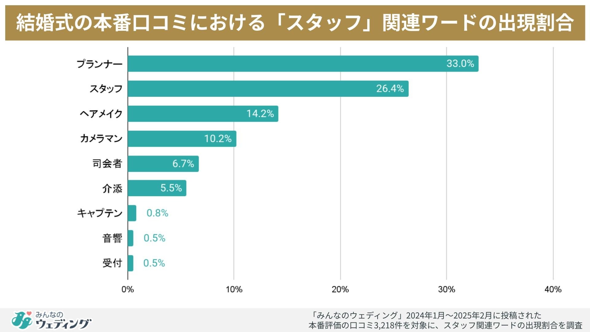 今回は実際に結婚式を行った新郎新婦の「本番」口コミより、「スタッフ」に関する評価に注目して分析を行いました。