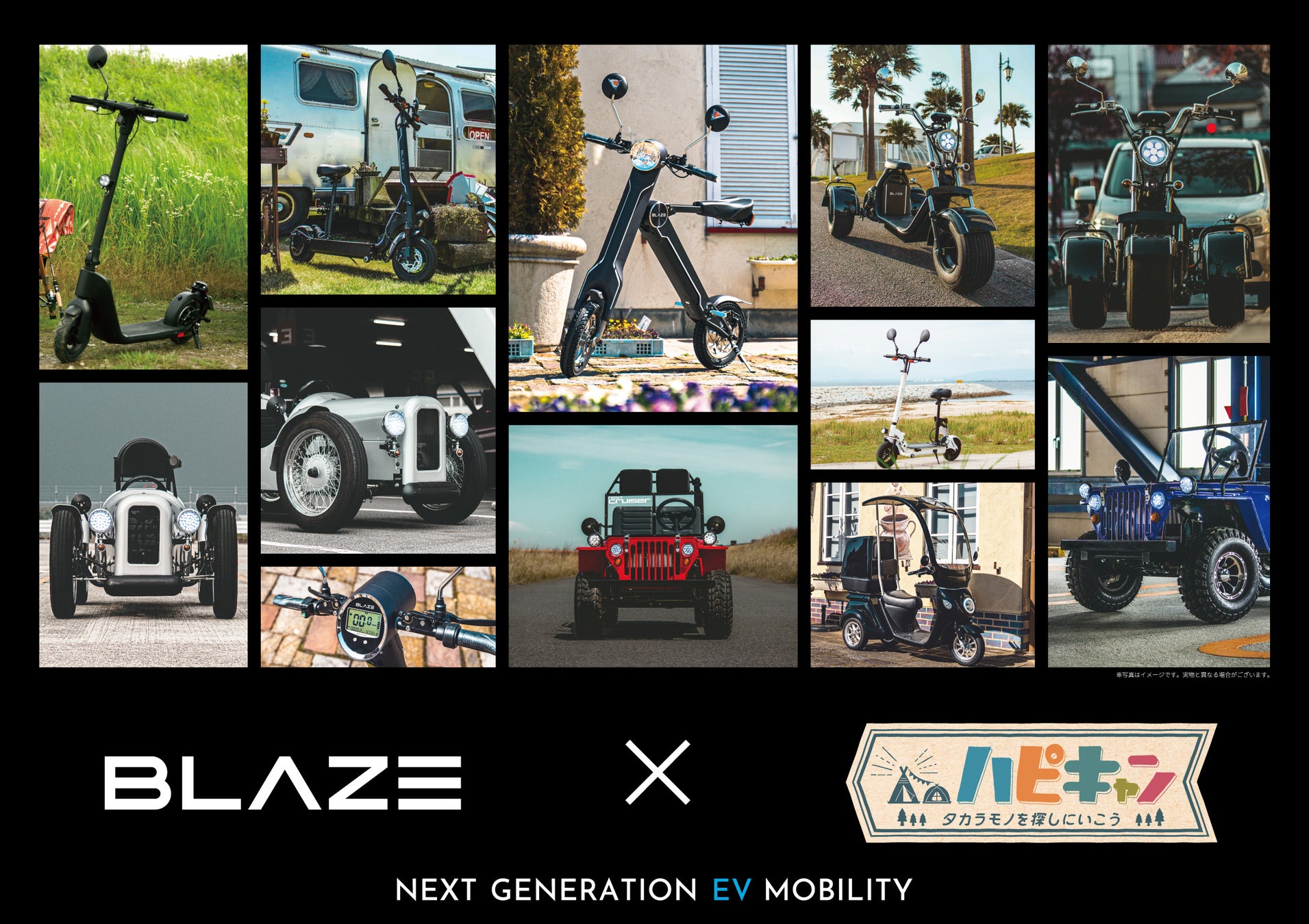 電動モビリティメーカー(株)ブレイズは、「第3回名古屋モーターサイクルショー」に、『ブレイズ × ハピキャン』 コラボレーション出展いたします!