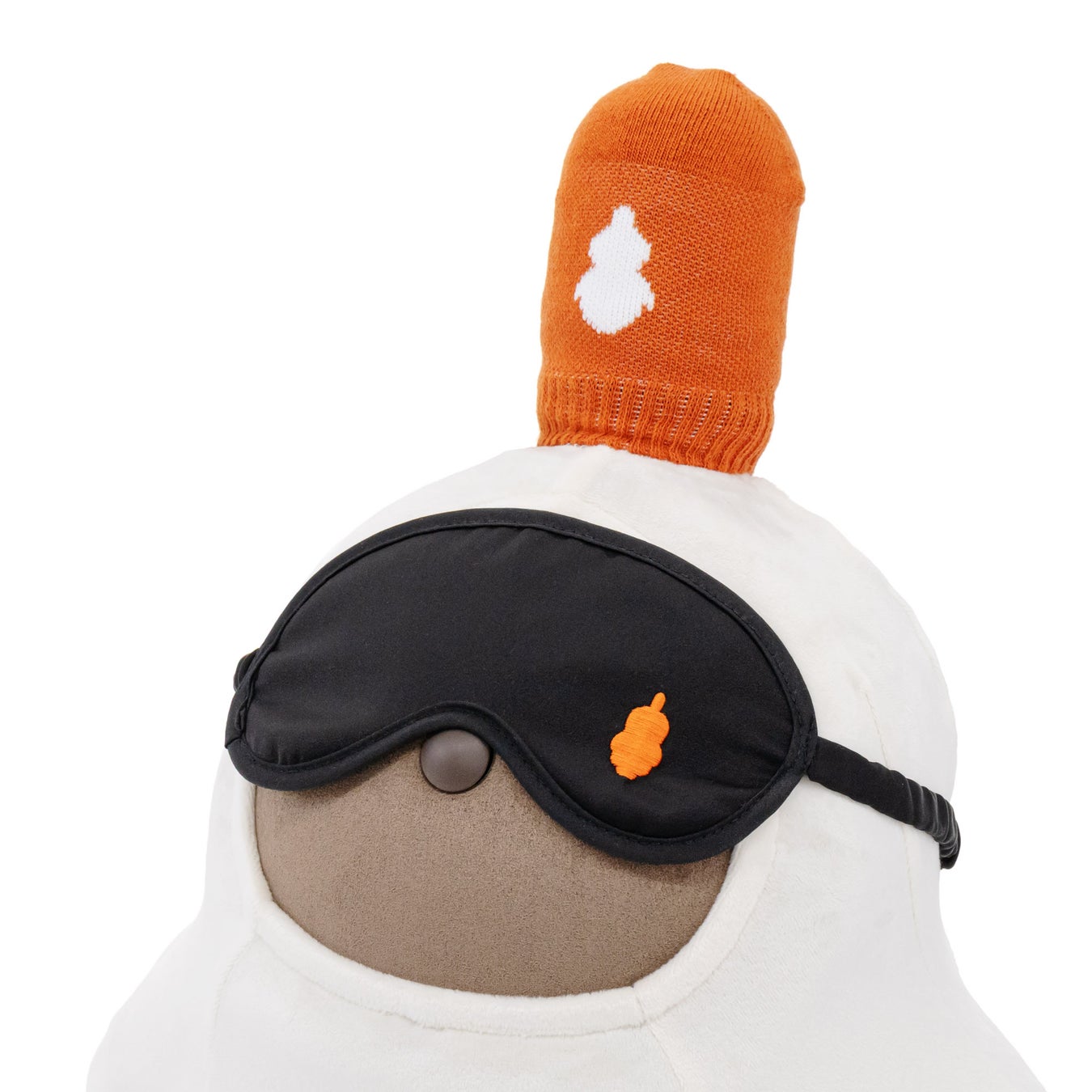 ソックスのようなフィット感で、ホーンをやさしく保護します。セットのアイマスクは、ブラックの地にホーンカバーと同色の刺繍を施した、シックなデザイン。同素材の巾着にも、『LOVOT』のシルエット刺繍をあしらいました。