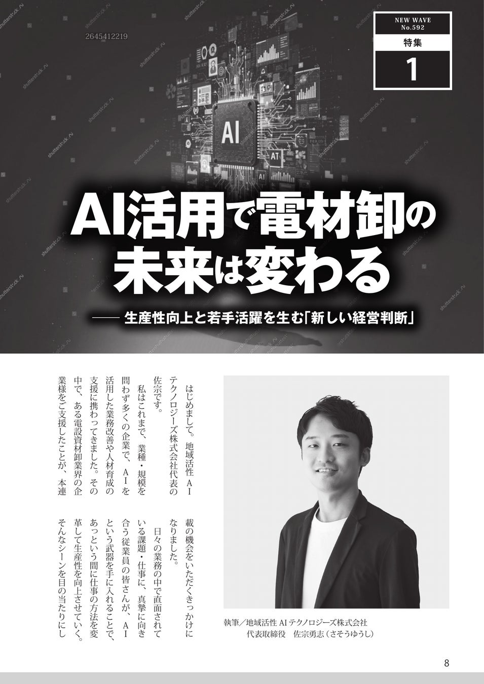 地域活性AIテクノロジーズが寄稿。電材卸の業界誌『NEW WAVE』にて3カ月連続のAI活用特集がスタート