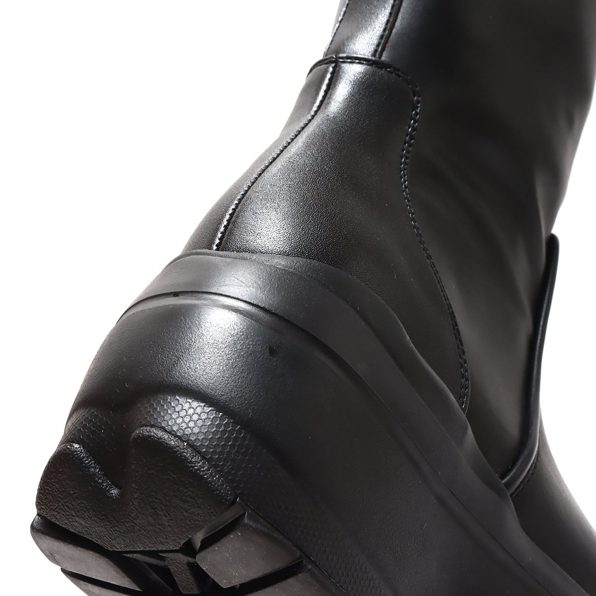 シンセティックレザーで仕上げた卵のような丸いトゥは、エレガントかつかわいらしさを演出。大胆な仕様のボリュームと、履き口から足首にかけて細くなるようデザインはスタイルアップ効果も格上げです。インラインにないatmos pinkだけのロングブーツに注目です!!