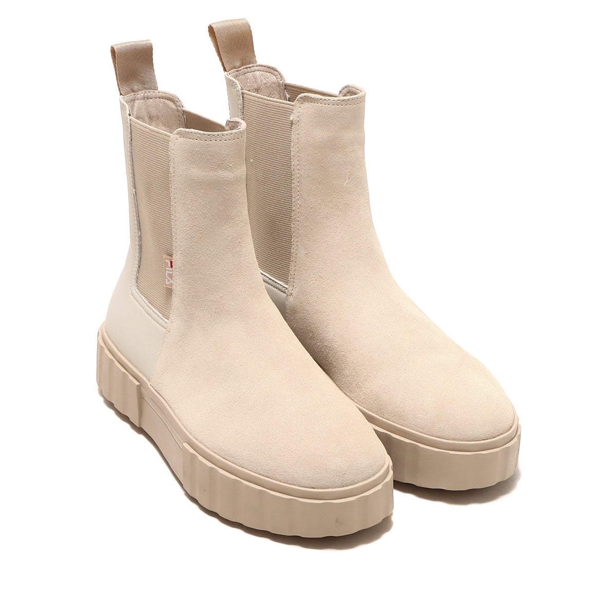 『スニーカーとブーツは、一つになれる』FILAのデザインフィロソフィーが光る、トレンドであるチェルシーブーツスタイルのアッパーに今っぽさのあるボリューミーなプラットフォームをコンバインした今シーズンのニューモデルが登場。インナーのフワフワ素材はこれからン季節に気分が高まり、厚底スニーカーにはない大人っぽさがコーディネートをアップデートしてくれます。絶賛発売中です!