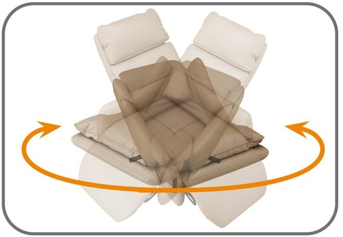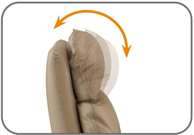 3、首が疲れにくい可動式ヘッドレスト。 ※新機能(4モーター限定機能)