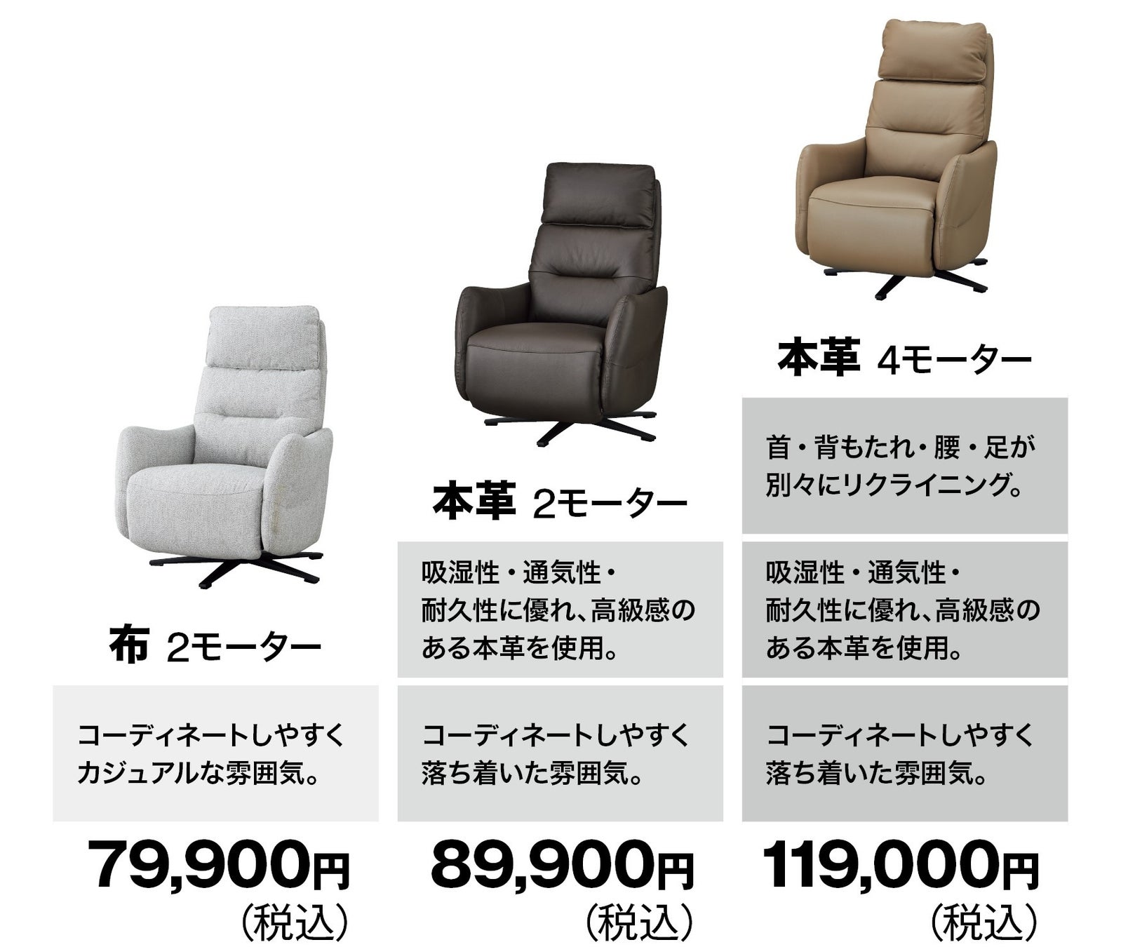 【ニトリ】「自分好みのくつろぎ空間。」を叶える、人気の電動パーソナルチェアLE01シリーズに、4モーター(本革)が新登場
