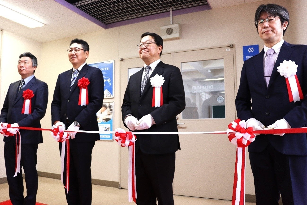 4号館4階440講義室のネーミングライツ公募にマコー株式会社が応募し、校内での審査を経て、ネーミングライツ・パートナーに選ばれました。440講義室は、定員120名の2クラス合同授業や研修等で使われている講義室で、令和7年4月1日から3年間、愛称は「MACOHO Lecture Room」となります。