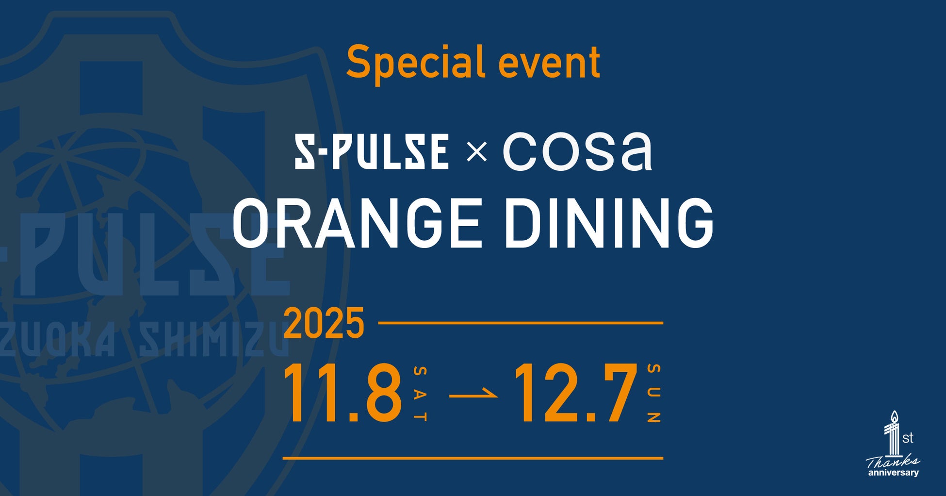 株式会社cosa(所在:静岡市葵区御幸町20番地 代表取締役: 大井一郎)は、開業1周年イベント第1弾として、11月8日(土)〜12月7日(日)に清水エスパルスとのコラボ企画「S-PULSE×cosa ORANGE DINING」を開催します。