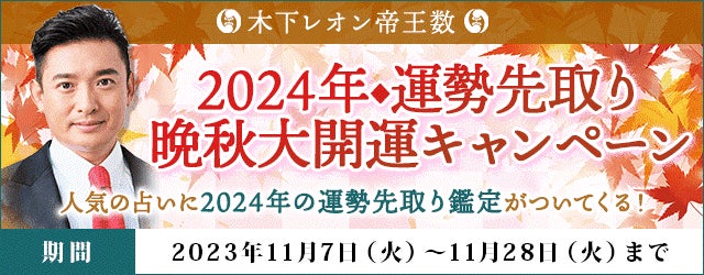 「突然ですが占ってもいいですか?」で話題!木下レオンの月額サイトで『2024年◆運勢先取り 晩秋大開運キャンペーン』開催!